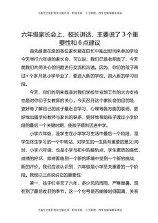六年级家长会上,校长讲话,主要说了3个重要性和6点建议.docx