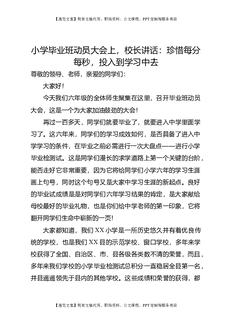 小学毕业班动员大会上,校长讲话:珍惜每分每秒,投入到学习中去.docx