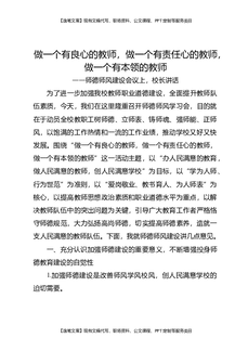 师德师风建设会议上,校长讲话:做一个有良心的教师,做一个有责任心的教师,做一个有本领的教师.docx