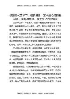 校园文化艺术节,校长讲话:艺术是心灵的爱琴海,是陶冶情操、享受文化的伊甸园.docx