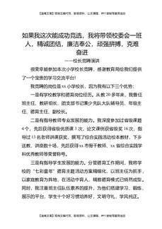 校长竞聘演讲:如果我这次能成功竞选,我将带领校委会一班人,精诚团结,廉洁奉公,顽强拼搏,克难奋进.docx