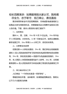 校长竞聘演讲:如果能得到大家认可,我将竭尽全力、忠于职守、克已奉公、勇往直前.docx