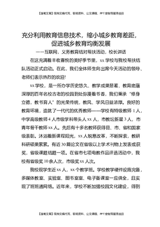 互联网,义务教育结对帮扶活动,校长讲话:充分利用教育信息技术,缩小城乡教育差距,促进城乡教育均衡发展.docx