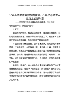 冬季田径运动会暨体艺节闭幕式,校长致辞:让奋斗成为青春勃发的能量,不断书写师生人生路上的新华章.docx