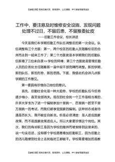 后勤工作会议,校长讲话:工作中,要注意及时维修安全设施,发现问题处理不过日,不留后患,不留推委扯皮.docx