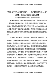教职工趣味运动会,校长精彩讲话:大家在努力工作的同时,一定要照顾好自己的身体,时刻关注自己的身体.docx