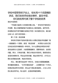 学校中层领导班子会上,校长用4个词语精彩讲话,我们给老师也做出榜样,赢在中层,你们的优秀代表了整个学校的优秀.doc