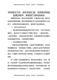 学校亮点工作,校长总结汇报:在特色学校的创建过程中,享受到了成长的快乐.docx