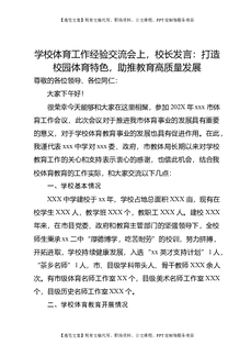 学校体育工作经验交流会上,校长发言:打造校园体育特色,助推教育高质量发展.doc