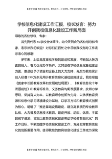 学校信息化建设工作汇报,校长发言:努力开创我校信息化建设工作新局面.doc