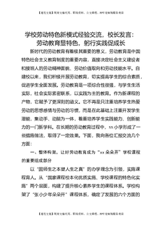 学校劳动特色新模式经验交流,校长发言:劳动教育显特色,躬行实践促成长.doc