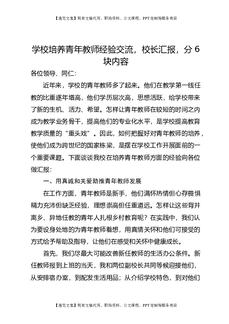 学校培养青年教师经验交流,校长汇报,分6块内容.doc