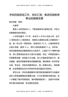 学校民族团结工作,校长汇报:推进民族教育事业的健康发展.doc