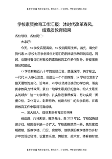 学校素质教育工作汇报:沐时代改革春风,结素质教育硕果.doc