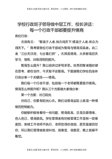 学校行政班子领导做中层工作,校长讲话:每一个行政干部都要提升情商.doc