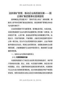 创新煤矿管理,推动企业高质量发展——国企煤矿集团董事长授课提纲.docx