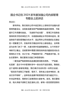 国企书记在202X新年度加强公司内部管理专题会上的讲话.docx