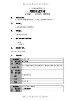 XX印刷机械有限公司招聘管理流程描述文件.doc