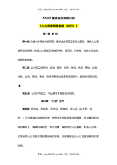 XX集团股份有限公司人力资源管理制度(试行).doc