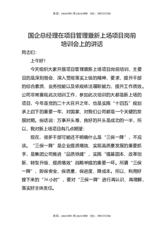 国企总经理在项目管理暨新上场项目岗前培训会上的讲话.docx