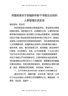 市国资委关于加强新形势下市管企业组织人事管理交流发言.doc