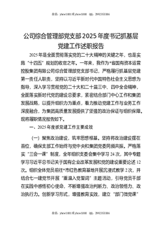 公司综合管理党支部2025年书记抓基层党建工作述职报告.docx