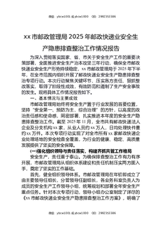 XX市邮政管理局2025年邮政快递业安全生产隐患排查整治工作情况报告.docx