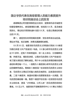 国企学员代表在高级管理人员能力素质提升培训班座谈会上的发言.docx