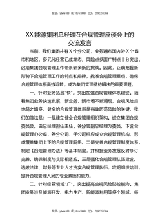 XX能源集团总经理在合规管理座谈会上的交流发言.docx