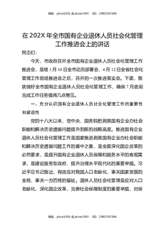 在202X年全市国有企业退休人员社会化管理工作推进会上的讲话.docx