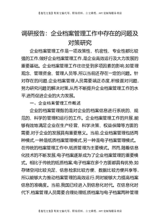调研报告:企业档案管理工作中存在的问题及对策研究.docx