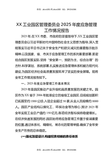 XX工业园区管理委员会2025年度应急管理工作情况报告.docx