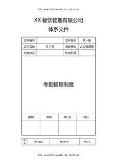 XX餐饮管理有限公司考勤管理制度.doc