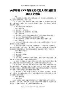 关于印发《XX有限公司优秀人才引进管理办法》的通知.doc