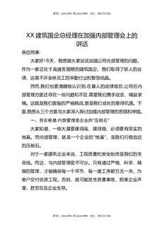 XX建筑国企总经理在加强内部管理会上的讲话.docx