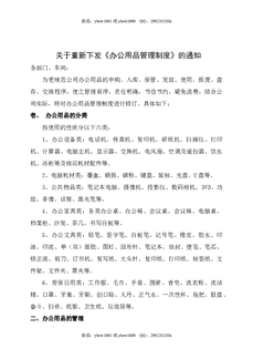 关于重新下发办公用品管理制度的通知.doc