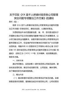关于印发《XX县千人桥镇村级劳务公司管理突出问题专项整治工作方案》的通知.docx