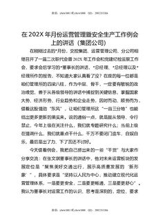 在202X年月份运营管理暨安全生产工作例会上的讲话(集团公司).docx