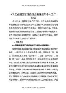 XX工业园区管理委员会主任三年个人工作总结.docx