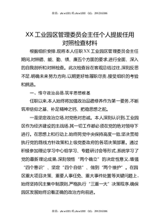 XX工业园区管理委员会主任个人提拔任用对照检查材料.docx