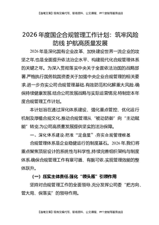 2026年度国企合规管理工作计划:筑牢风险防线,护航高质量发展.docx