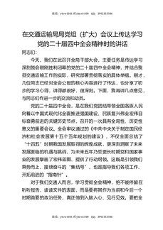 在交通运输局局党组(扩大)会议上传达学习党的二十届四中全会精神时的讲话.docx