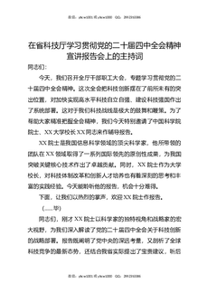 在省科技厅学习贯彻党的二十届四中全会精神宣讲报告会上的主持词.docx