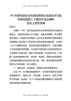 XX市宣传部在全市宣传思想文化系统学习宣传贯彻党的二十届四中全会精神会议上的发言稿.docx