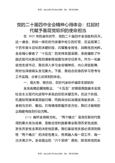 党的二十届四中全会精神心得体会:扛起时代赋予基层党组织的使命担当.docx