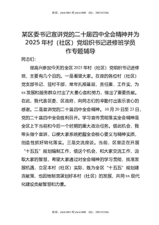 某区委书记宣讲党的二十届四中全会精神并为2025年村(社区)党组织书记进修班学员作专题辅导.doc
