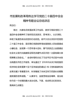 市发展和改革局传达学习党的二十届四中全会精神专题会议总结讲话.docx