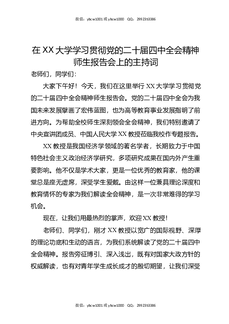 在XX大学学习贯彻党的二十届四中全会精神师生报告会上的主持词.docx