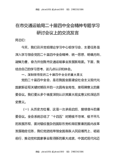在市交通运输局二十届四中全会精神专题学习研讨会议上的交流发言.docx