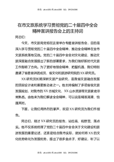 在市文旅系统学习贯彻党的二十届四中全会精神宣讲报告会上的主持词.docx